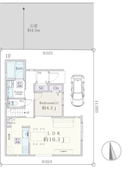 一方 北 間口9m 公道 幅4.5m |